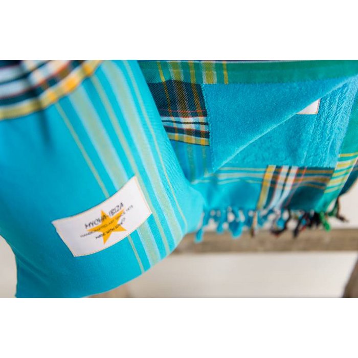 "Kikoy" bedeutet, dass das Strandtuch auf der einen Seite mit gewebter Baumwolle und auf der anderen Seite mit Frottee bedeckt ist. Durch diese Zusammensetzung trocknet es schnell.