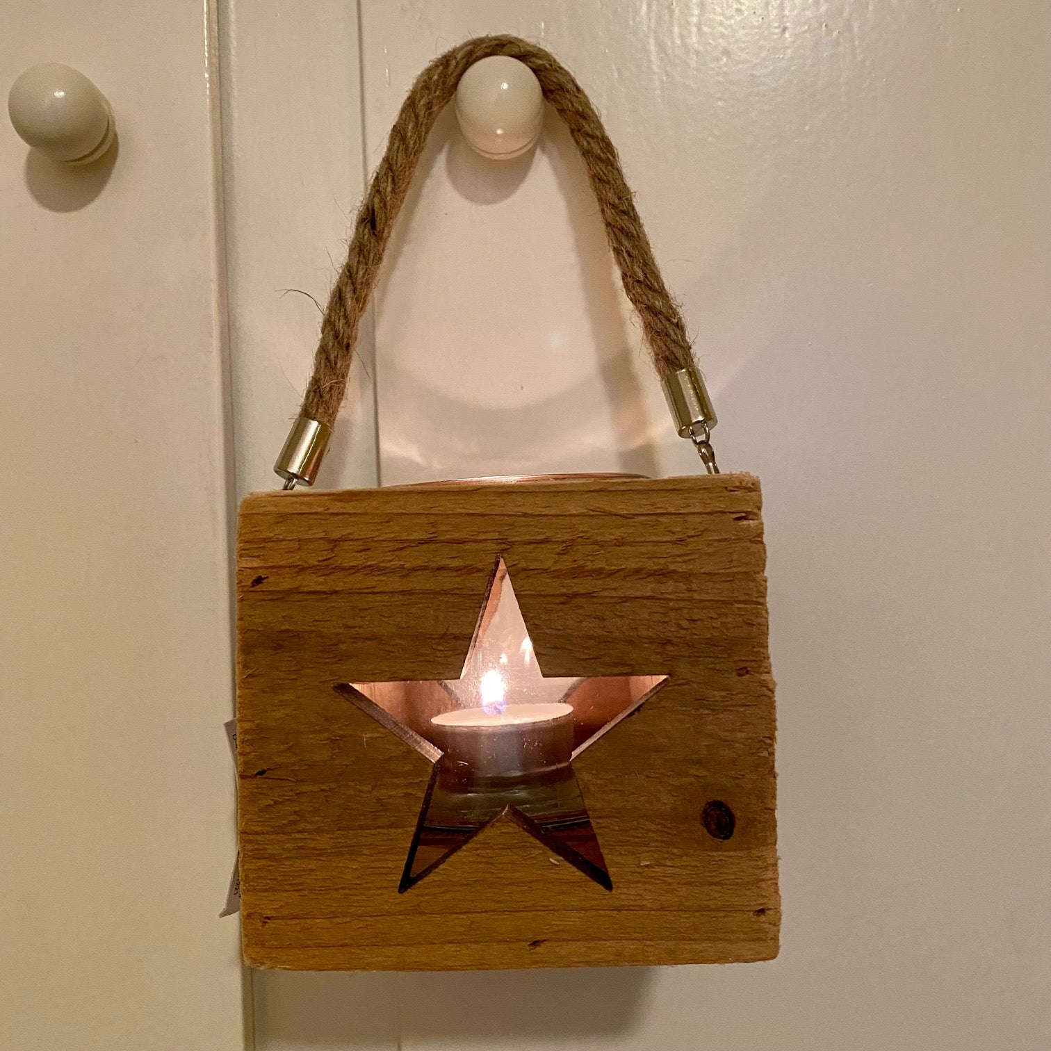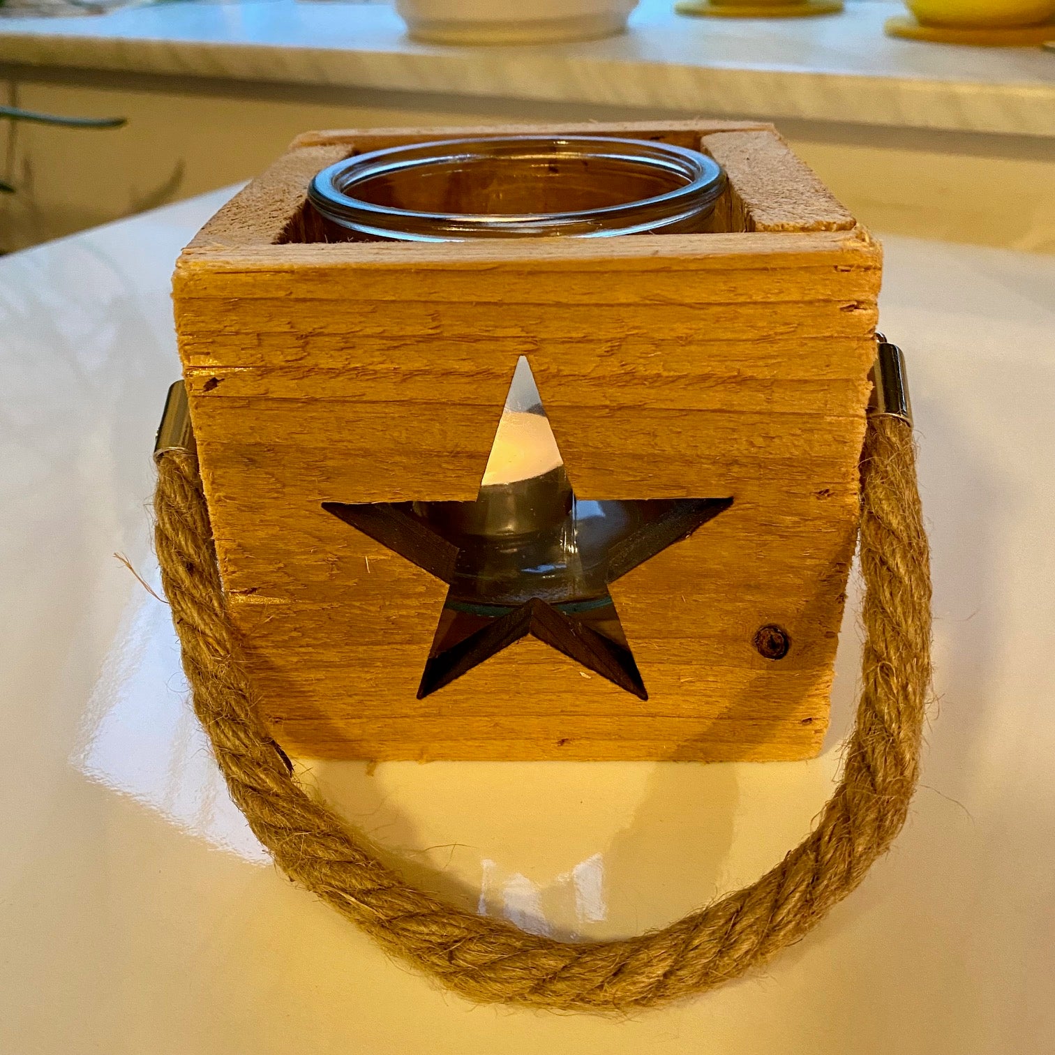 Holzwindlicht mit Sternmotiv und Glaseinsatz
